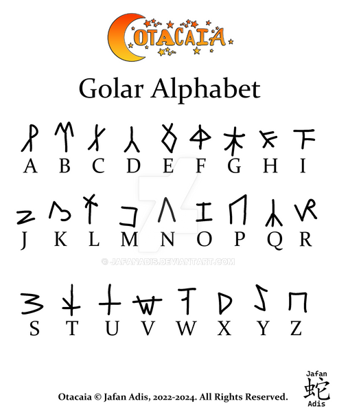 This is the script for the Rumaeri dialect of the Otacaian Language.Otacaia © Jafan Adis, 2022-2023. All Rights Reserved.