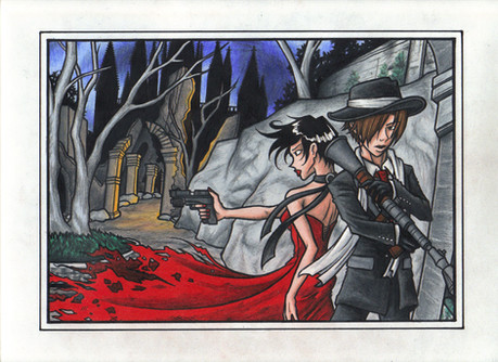 The video game Radiata Stories for PS2 didn't get much attention back in 2005 when it came out. I'm actually a pretty big fan of the game, I think it was a very special gem... the only thing I didn't care for in the game was the fact that almost every single armor you could get in the game looked kinda dorky.So I've decided to give the characters a cool new modern look! The boy is Jack Russell and the girl is Ridley Silverlake. I'm very happy with the way their outfits look, although I think my version of Ridley looks too close to female Naruto...