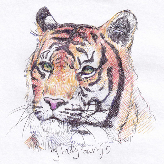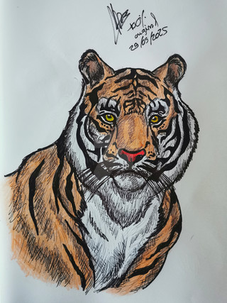 Will here is my Tiger head. I couldn't think of a background for it. This is the best tiger, that I ever made.Used: Pencil, Alcohol markers, Arteza Fineliner Pens, Arteza Colored pencils, Ink pens, Gelly roll (white pen).