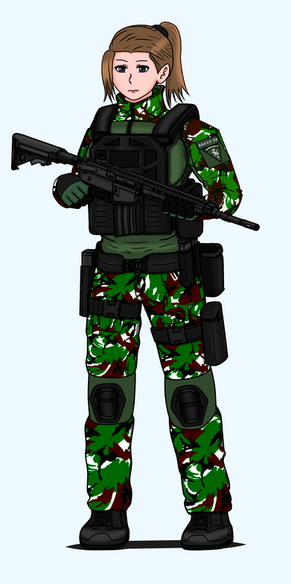 Cpl. Carmine a peculiar man who constantly wears the heavy helm. He is outgoing and often a voice of reason of the team. To balance out En’s antics. Has Yuki Rep under his wing. He is the team’s heavy weapons guy. His country of origin is Suyum.