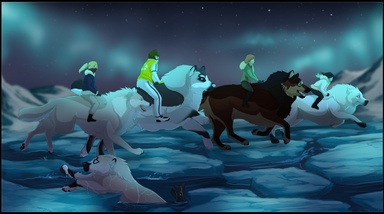 I love the snow and motion of this piece as they run through the snow~ and good luck on your story! It sounds amazing.
