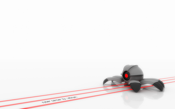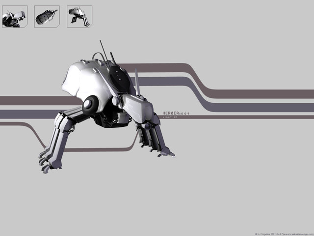 The model used here was something I created in 3D Studio 3. That's probably 10 years ago, but I've kept it around all of that time, and never modified it since (except for new textures). Most of the textures on the mech was added afterwards in photoshop and is really just hand drawn doodles scanned, and then scaled to fit the perspective. Some post processing was needed in photoshop, mostly colourizing and contast, but I also put in a new background. The red line was drawn in as well.The entire piece has a wacked perspective, but that's what I like the most about it anyway.