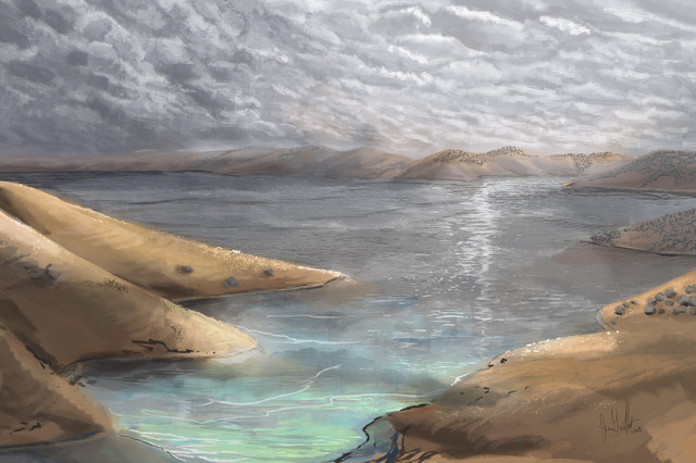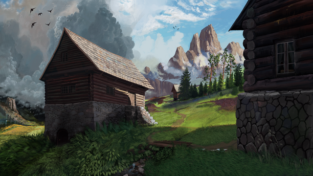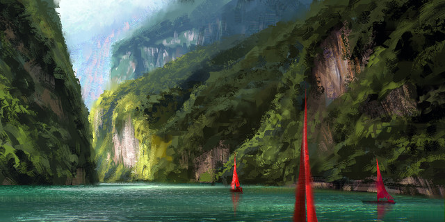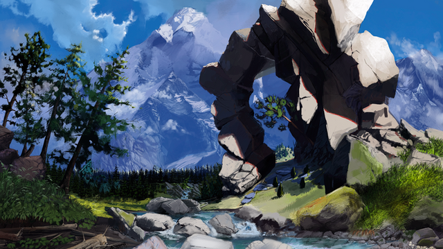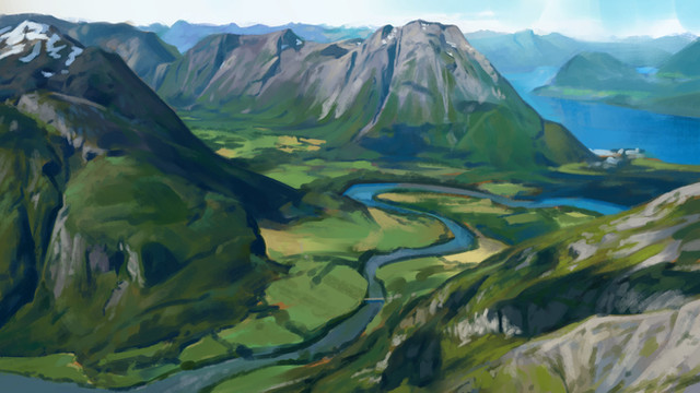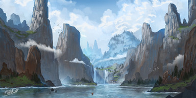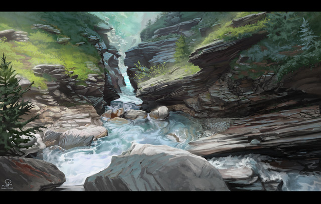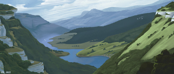 #clouds #dam #krita #landscape #ravine #river #water #waterdam #dampainting