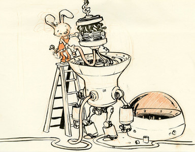 love the anatomy of the robot. the rabbit looks sweeeet.