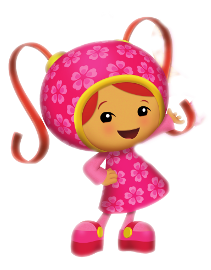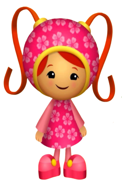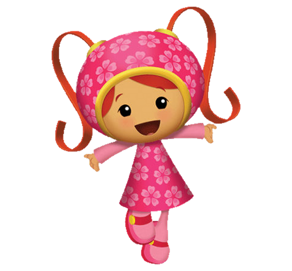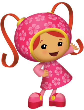 Milli has red hair held in 2 ponytails (or pigtails) and rosy cheeks. Without her helmet, her ponytails are bigger and fuller. With her helmet, her ponytails are flat and ribbon-like. She usually wears a shirt over a dress and a helmet, with tights and platform shoes that are similar to Mary Janes. The outfit's default color is pink and the dress and helmet have a default pattern of pink flowers. The outfit changes color and pattern when she uses her Pattern Power (See Milli's Many Patterns ). She is six years old, according to the Team Umizoomi website.
