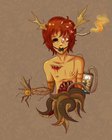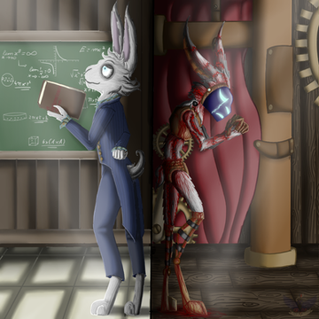 Ahhh and you're marvellous glowing works are back as well, look this lovely piece! I see you've tried your hand at that other style again and it's brilliant. Really loving the clean lineart and vibrant colours in this and who's this mysterious new character there, I love the look of the owl! The wings are so neatly done, as trash for mechanical creatures this is an instant fav. Really awesome work!