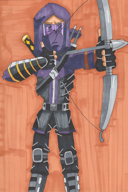 Hawkeye has also been thoroughly trained by Captain America in tactics, martial arts and hand-to-hand combat. Hawkeye excels in the use of ranged weapons, especially the bow and arrow and carries a quiver containing a number of customized "trick arrows". As Ronin, he shows great proficiency with the katana and other melee weapons. He has gained a reputation for being able to "turn any object into a weapon", and has been seen using items such as tin plates, coins, sticks and other debris to great effect against his enemies.