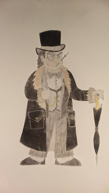 Born Oswald Chesterfield Cobblepot, the Penguin was bullied as a child for his short stature, obesity, and beak-like nose. These traits made him an outcast in his rich, high society family; their rejection drove him to become a criminal. When Penguin was a young child, his father died of pneumonia after being drenched in a downpour. Because of this, his mother became over-protective and forced him to carry an umbrella whenever he went outside — even on sunny days. In keeping with his family's tradition of wealth, the Penguin lives a life of crime, yet executes it with his own self-proclaimed class and style.