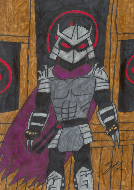 Oroku Saki is a member of the Foot Clan, a Japanese ninja dynasty founded by an ancient ancestor of Hamato Yoshi, whom Saki came to view as a rival. Jealous of Yoshi's leadership, Saki concocted a plan to usurp him. The arrival of a visiting master sensei to the Foot School proved the perfect opportunity for Saki to make his move. As the class bowed before the visiting sensei, Saki pinned the back of Yoshi's kimono to the wall with a knife, preventing him from bowing to show respect for the sensei, and everyone considered an insult. Then, when Yoshi found the knife and pulled it out, they considered it a plot to kill the sensei, so Yoshi was banished from the Foot Clan. From then on, Saki took over the Foot Clan and took the once noble clan and turned it into an army of crime. Not content with having banished Yoshi from the Foot, Saki went after Yoshi and followed him to New York City. We assume that was when Saki somehow met up with Krang, the alien warlord from Dimension X, who armed him with all sorts of technology that ranged from robotic Foot Soldiers to the colossal Technodrome. Wearing new steel bladed armor, Oroku Saki became The Shredder.