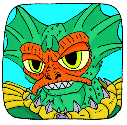 Slithe or S-S-Slithe is the leader of the Mutants and a very dangerous enemy of the ThunderCats. Although lacking sophistication, he can be very cunning. Domineering and impatient, Slithe often must browbeat the other Mutants into going along with his plans. He has a tendency to emphasize on pronouncing the letter "S" in his speech, usually ending his sentences with the question, "Yes-s-s?" He also holds little to no respect for Mumm-Ra.Unlike Jackalman and Monkian (whose appearances are identical to other mutants of their kind), Slithe stands out from other Reptilians because of his ears. Slithe has a rather stocky build. He also posseses a strong muscular tail which he often uses as a weapon by swinging it and knocking his opponent off their feet.