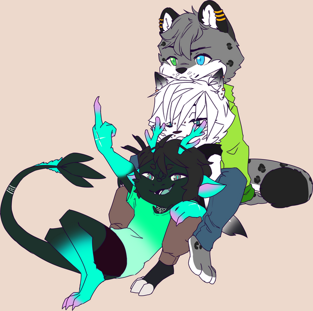 I made a collab with aalbumllupus and here's the final result! I did flat colors because they did too and i wanted to match theirs, also forgot a bit of the tail so i promise its not coming out of her leg ;-;ALSO