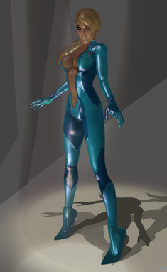 Great pose and angle. However, here are a few things for consideration for either future renders or if you plan to make changes to this render. First of all, you might want to consider putting her left hand closer to her body, as it's just floating right now. If you want to show shadows you can slightly leave a gap but right now that gap's too big IMO. Try adjusting the numbers fields for the X/Y/Z coordinates in XNALara if you want smaller movements. Second, IMO the hair and suit are too shiny. I personally would tone those down in the spec department if I made this. Third, you might want to get rid of seams on her ankles. You can do this by joining meshes and removing doubles at the very end. If you want to still keep things flexible afterwards, you can always save a different copy of your file, or my favorite: use Photoshop to remove those seams. At any rate, great work! e.deviantart.net/emoticons/s/s⦠" width="15" height="15" alt="