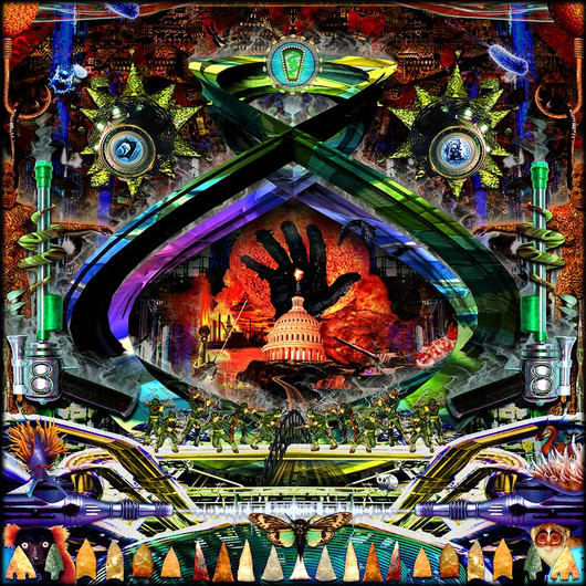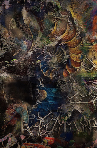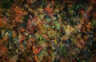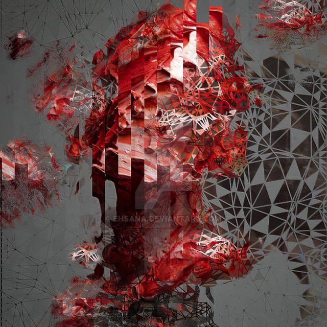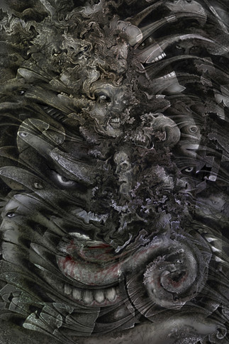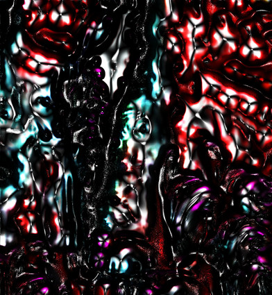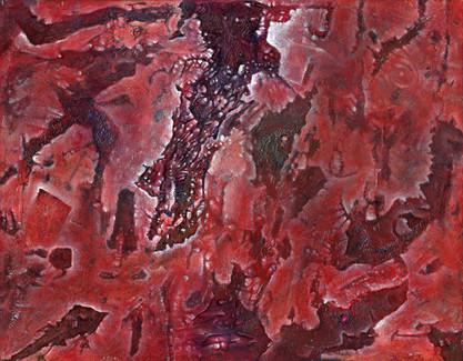 Another attention-getting piece... this is like an exposed heart in a rotting corpse. The splash of red draws my eyes in, then they crawl over the detailing like roaches... interesting and intriguing artwork.