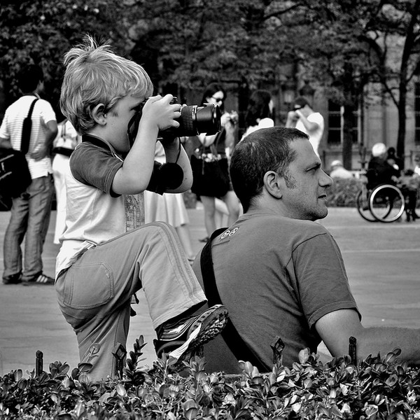 wow.. this is a really nice shot.. haha.. there is like a dialog with the kid and the man.. and the lady is like not knowing what's happening.. being busy with the camera.. haha.. really nice..