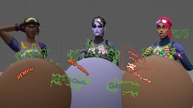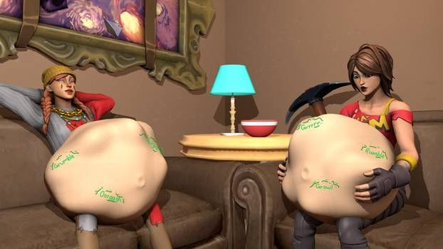 Penny and opal were invited to tntinas house for Thanksgiving... little did they know tntina is the greatest cook in fortnite, and she cooked a mountain of food just for penny and opal to feast on... after their guts was completely stuffed to the max with all the food, opal passed out as her belly sloshed and digested all the food while Penny is focusing on her breathing and trying not to explodeRelated content