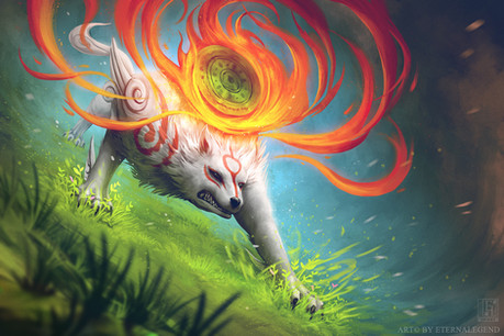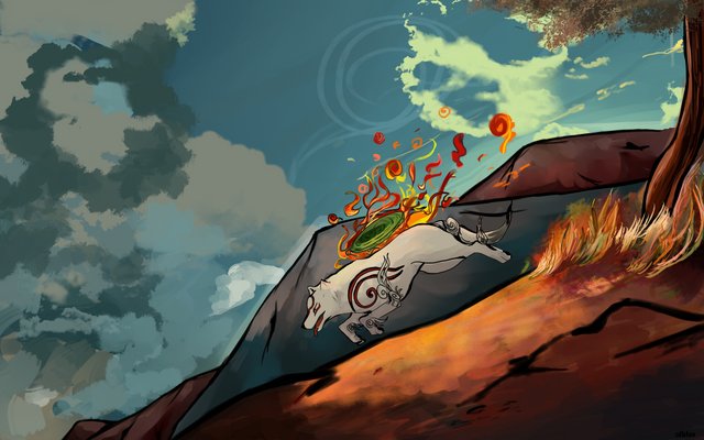I had no particular idea for this week's project, other than I wanted to draw Amaterasu from Okami, for no reason other than I very much enjoyed that game and it's been very sunny over here lately. I also saw it as an opportunity to change the overall colour palette of my gallery, needing something more pastel-y and less saturated than my most recent pictures (as of writing this). I'm not sure if it worked all that well, so I'll leave that up to you to decide. I encourage you to let me know in the comments.
