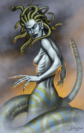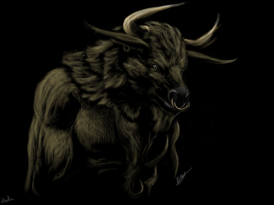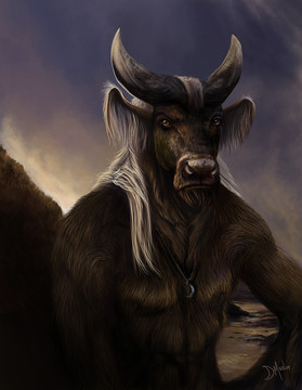 This is the fourth of 9 portraits I did for a White Wolf project called "Werewolf: The Skinner Reborn." Copyright belongs to White Wolf.This one is based on a spirit world creature named... wait for it... Minotaur.
