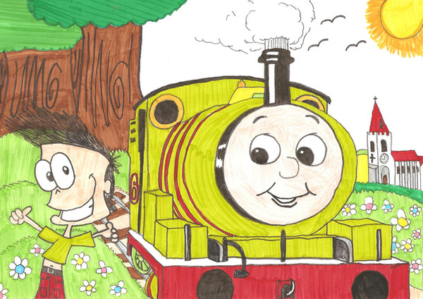 This is Charlie from my cartoon of James Juliussen he is just like Thomas The Tank Engine but a bit like the same because he is blue but no number 1 tag.Related content