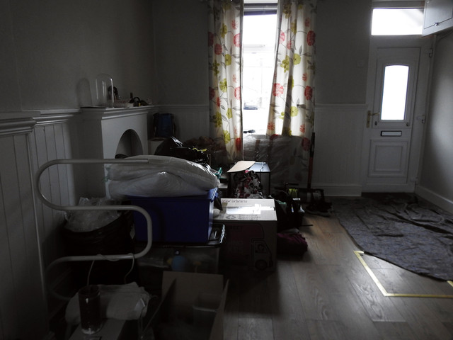 The inside of the home felt somewhat modernised with rooms painted in reds and blues and the trims painted white. There was still some of the original character of the home left untouched, such as the staircase, the built in cabinet in the dining room and the hardwood floors. Then there were the belongings, this is one of those homes where the owners just disappeared one day never to return. You can tell that they left almost everything behind, there were couches, the kitchen table and even the beds were still there!
