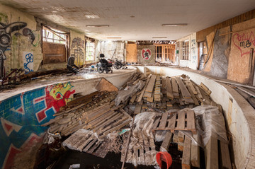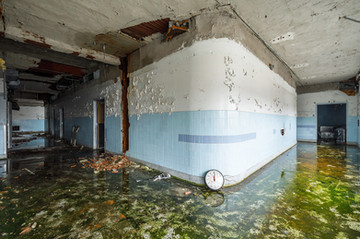 A rehabilitation pool inside an abandoned hospital in Ontario, Canada.I had explored this location a few times before this visit but had completely missed this entire area of the hospital.Β I have explored many vacant hospitals over the years and all of them have been very difficult to navigate.