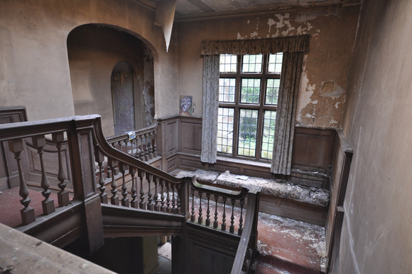 Here is the amazing staircase inside this abandoned ranch style home!!