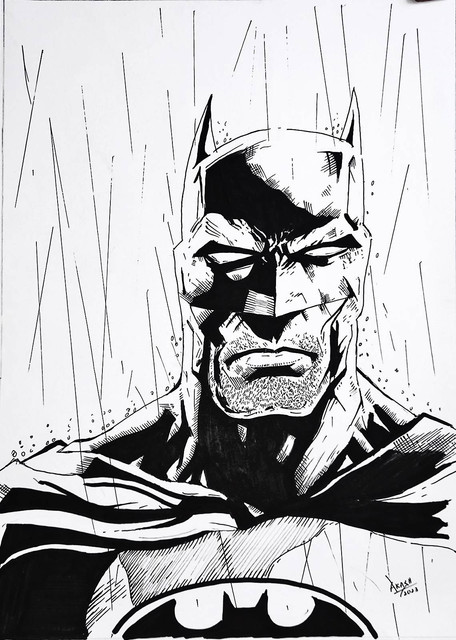 #batman #traditionalart #dccomics #ink #fanart #characterdesign #comic #noir #blackandwhite #gotham #lineart #monochrome #moody #originaldesign #paper #rain #thebatman