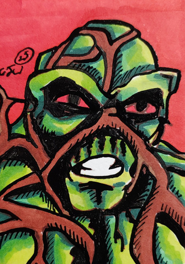 An old Swamp Thing I found, Green and coloured inks (cheapo fine liners) on A3 paper.Related content