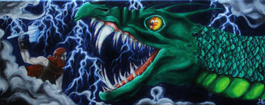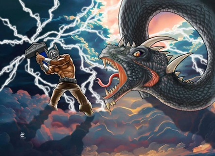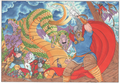 #acrylicpainting #comic #comicart #dragon #jormungandr #mixedmedia #monster #norsemythology #ragnarok #seamonster #serpent #thor #watercolorpainting #inkdrawingtraditionalart