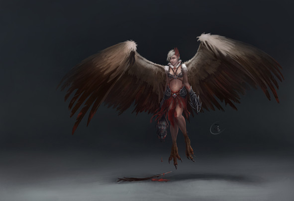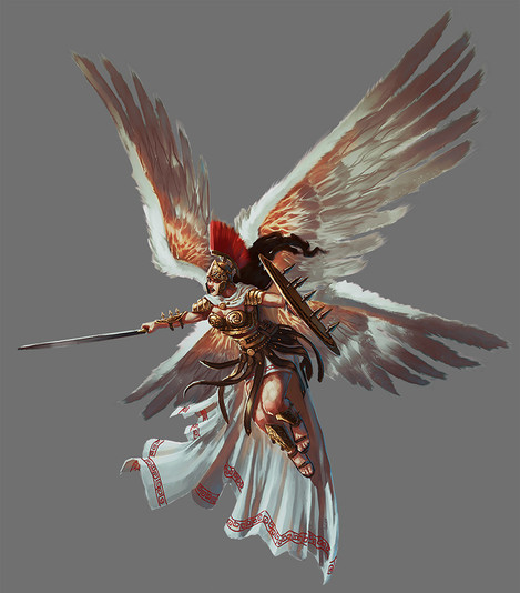 a character concept of an angel with a wing lost to battle.Related content