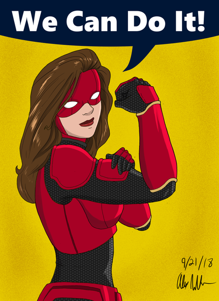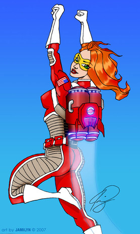 Thank all you guys for all the attention. Man, it seems like just last week I was thinking about posting a "Thanks for 500 pageviews" image.Redd Rocket is striking the famous Rosie The Riveter pose [link]