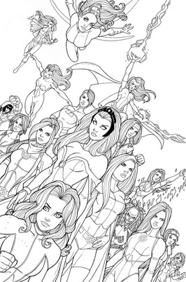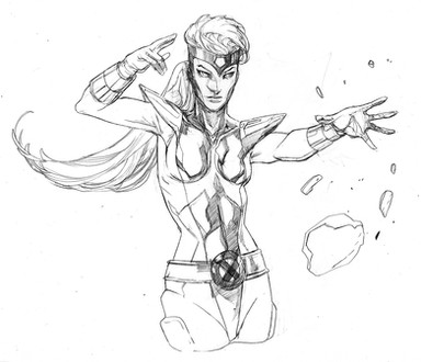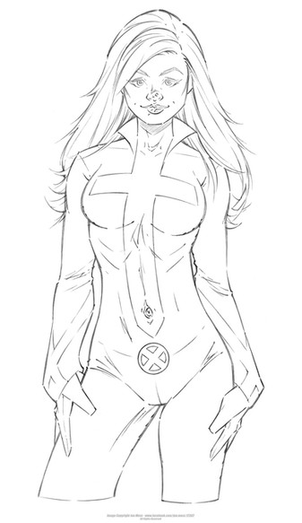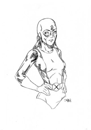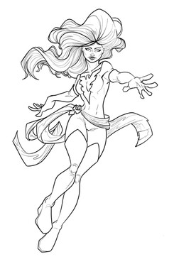 asked for a picture of the mutant messiah, hope summers, using a few powers. here she is using cyclops, storm and dazzler's powers. emma's diamond form will also be incorporated too.lines/inks by me