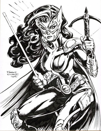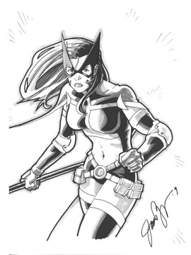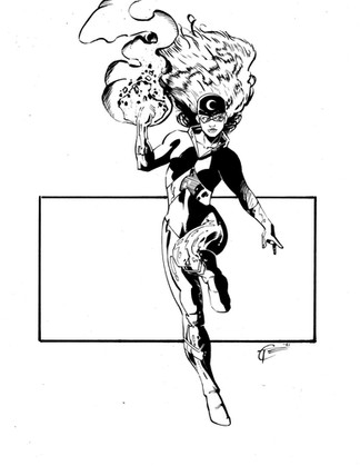 this is flamebird from the teen titans. i was introduced to her by rich bernatovech, the writer of the graphic novel i'm working on. she was also the orginal batgirl.lines/inks by me