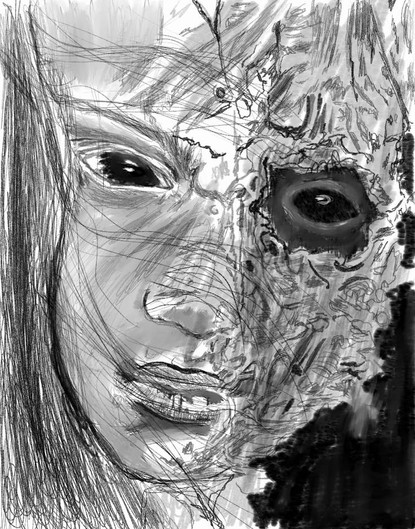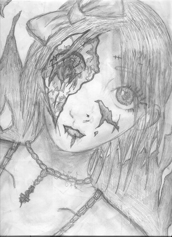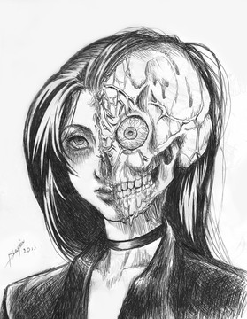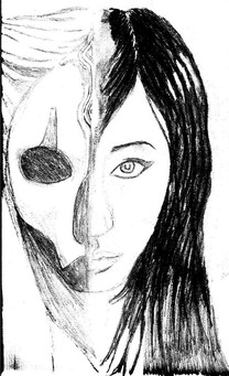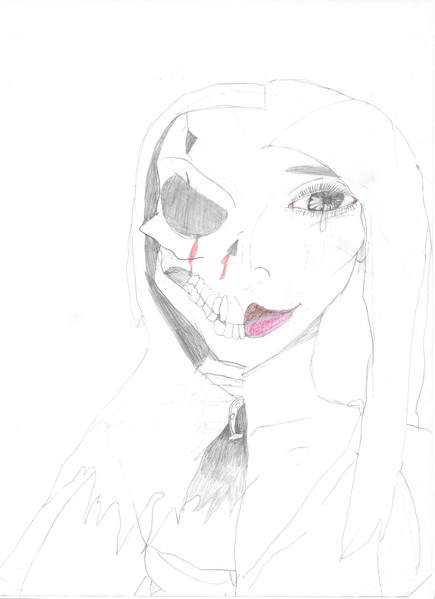 Drawing of Hel daughter of Loki, norse god of destruction.His daughter is both living and dead, beauty yet horrible torment.