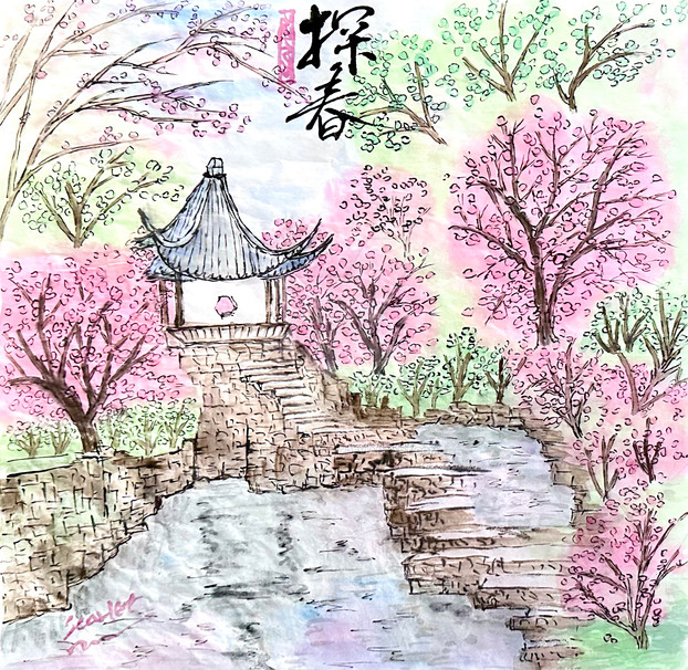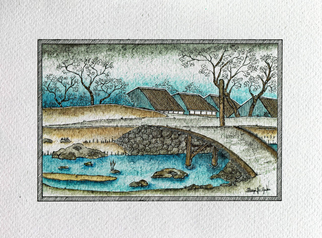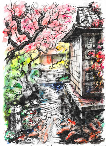 Watercolor and ink pen on 9x12" paperIt feels like spring here in southeastern US I love winter but my skin suffers enough! Hello to spring