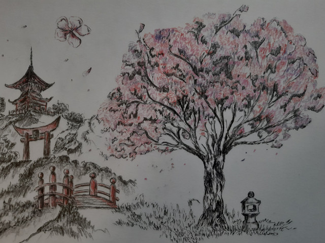#blossom #cherry #japan #lake #landscape #scenery #spring #springbreak #watercolor