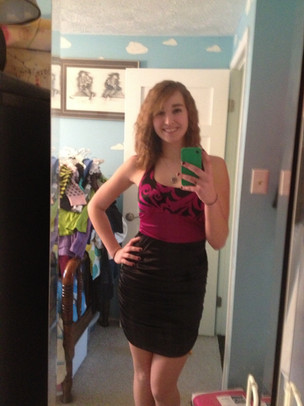 Nice outfit and pink hair, you look very beautiful.