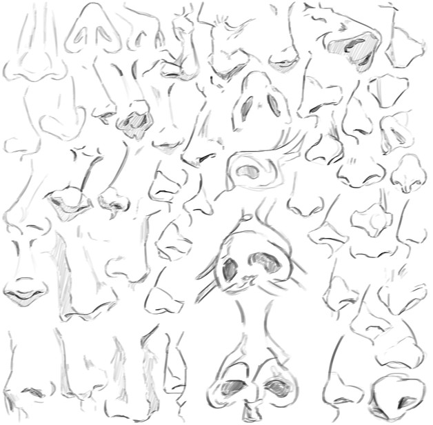 dem nosesIt's actually not difficult when you understand the fundamentals of what a nose is built of and the type of shapes. I didn't erase the building blocks I used in hope it would help anyone haha. When you get an understanding, you can actually alter noses to your liking... or if you draw manga, just put a dot in place of the nose, that seems to work too haha ^^