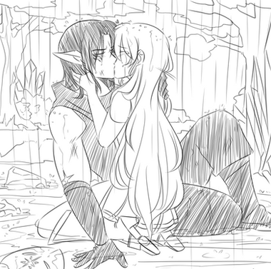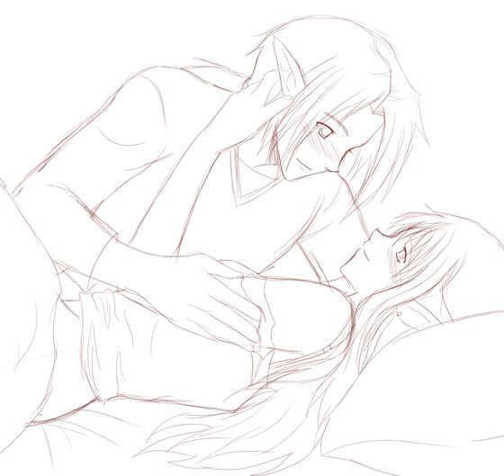 His eyes shamefully lower and looks off to the side. He feels undeserving of her affection, even after all that has happened. He sighs again, helpless under her soft comforting touch.