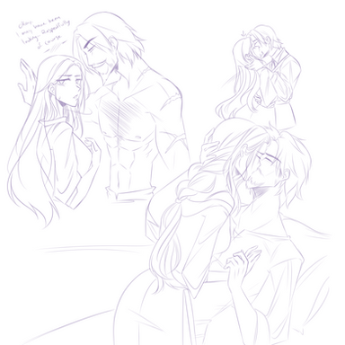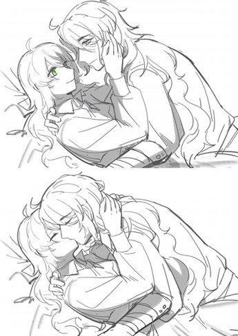 Ramses stirs from another nightmare. Its been roughly 3 days since the almost turning incident and he has not been sleeping well. Stressed and worried that these increase of youma activity has stirred something dark within him.. Argent herself has still not recovered from spending her powers to help him. He still feels bad for letting it get so bad in the first place... He thought he could handle it himself.. and how she proved him wrong. He turns around to find Argent sleeping next to him. He sighs in relief that she has not come to harm.. having to remind himself that she is not back there fighting a terrible Harvester by herself. He looks at the clock and its nearly 2 in the morning. A few more hours till sun rise.. still plenty of time before then to head out and look for some youma before she wakes up. He tries to get out of bed but a slender hand grabs him, which makes him pause. He quickly turns around.