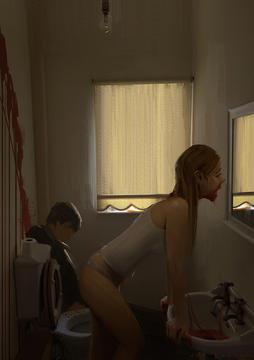 The atmosphere looks so peaceful with lots of neutral tones and soft textures, and then you catch a glimpse of the knife. I think she should be holding it in her other hand instead, like she's still trying to hide it but her mind is already made. It adds to the foreboding tone of the pic, I think Of course, I understand you won't be changing anything, but I just felt like adding my two cents