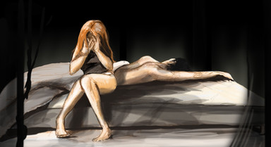 Great angle, composition, and that cold lighting... I can really feel it. It raises all kinds of questions; what's the story here? Who are these people and what's up with the girl with the knife (before I noticed that, I felt this real sense of intimacy, and then the knife just made me go, "wait, what?!"). Very filmic picture--your work is inspiring! Finish please