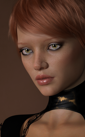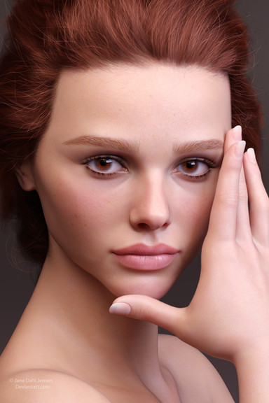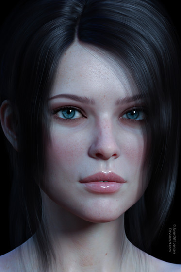 Very pretty! Β Love her eyes, and her full lips. Β What really stands out are the tiny little blemishes on the bridge of her nose, so realistic. Β Great touch!