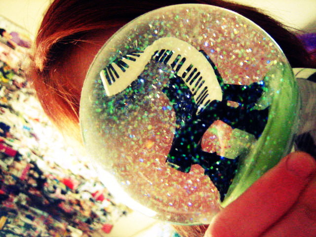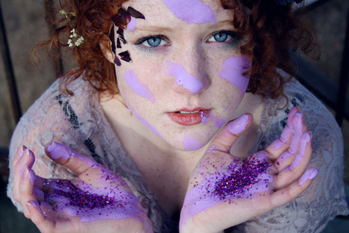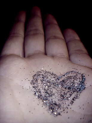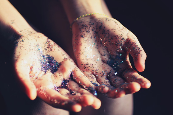 I like the wavering focus and the curl of your (?) hands. The purplish-blue + glitter is very interesting looking. Great work.
