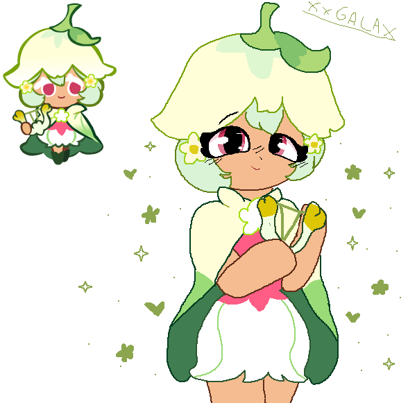 "From the tallest of trees to the most prettiest of flowers, Spring Cookie has dedicated herself to take care of all things nature and green. She embraces the beauty and wonder of nature, spending her whole life in forests and even her own garden. She is the most kindest and sweetest of Cookies you can meet, though that attitude changes if you mess with a plant."