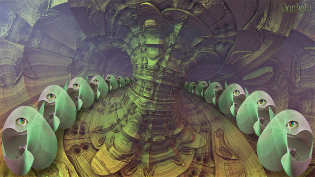 Done with Mandelbulb 3D and a little postwork with PS.Tweaked from BadSue on Renderosity. Thanks to BadSue for sharing the params!
