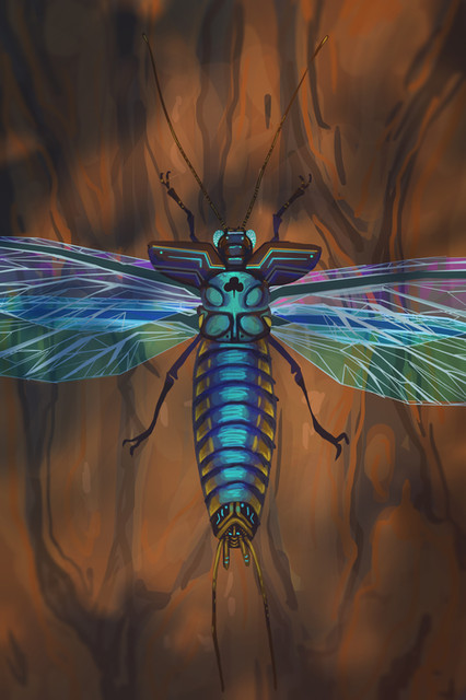 Very nice work - the bright blotchy colours give it a pleasantly alien appearance.