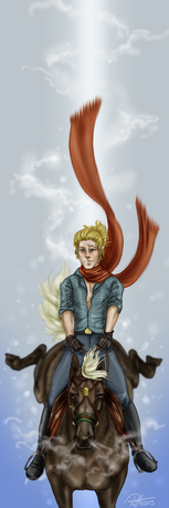 Also let's pretend Zyrah's back legs and neck don't exist because looking at them has me all sorts of YIKES. The rider on the ref seemed to be a pretty petite-ish woman (5'3" - 5'8" at the most?) and Josef being a taller guy--uh-- I had a difficult time trying to not make him look like a small bean, but it still posed challenges because of the angle.