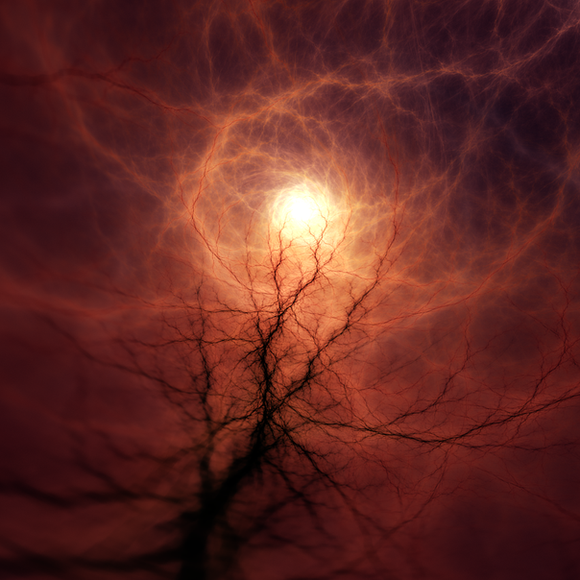 hehe... it's just 2 Apophysis renders layered in Photoshop, not much else to it!