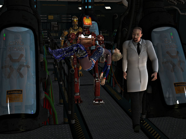 #3d #acid #bondage #cgi #conflict #damsel #daz3d #fantasma #fight #peril #rescue #robot #superhero #superheroine #supervillainess #captainmiracle #msanthropy