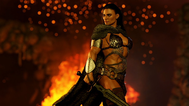 #3d #action #cgi #combat #daz3d #fantasy #female #fight #knight #ladyknight #longsword #medieval #sexy #sword #warrior #fire